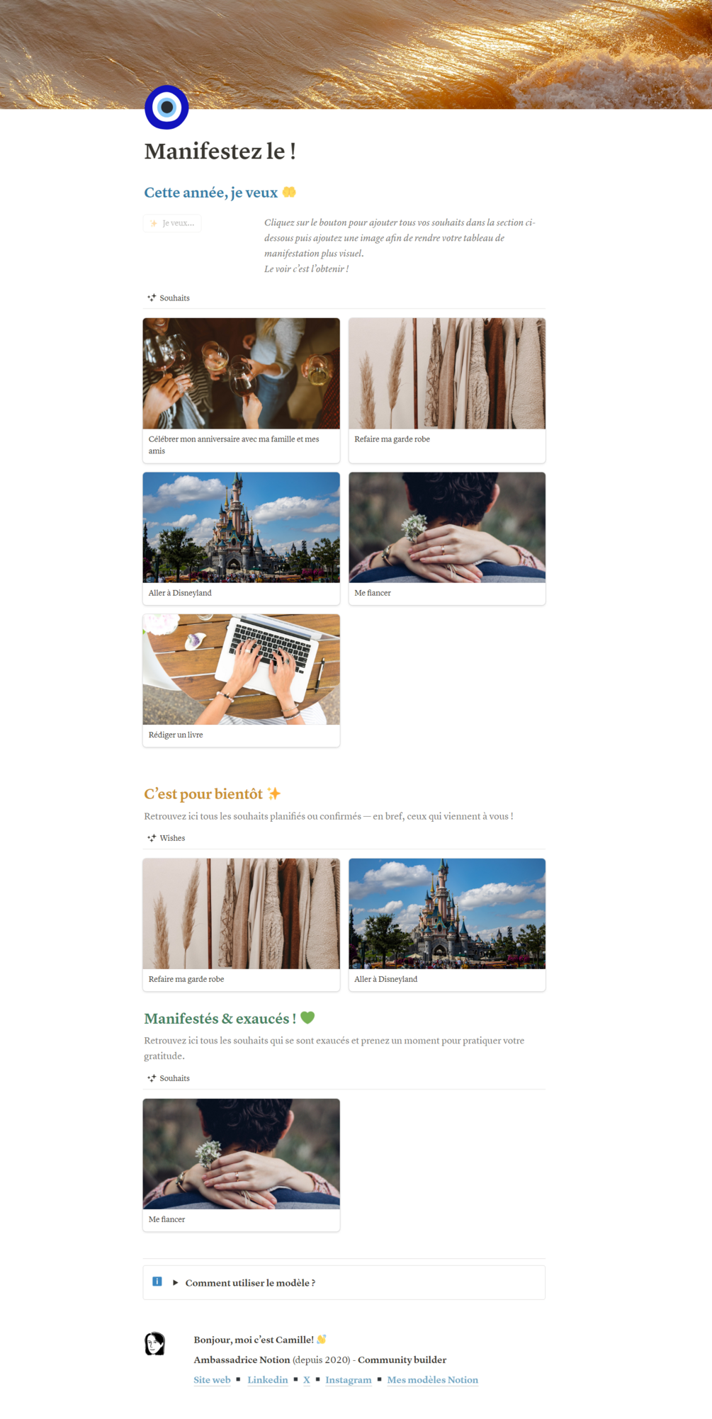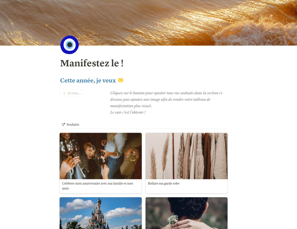 Le modèle "Manifestez le !" est un outil puissant pour visualiser et concrétiser vos souhaits et objectifs.